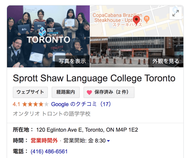 私がトロントへの留学にあたりSSLC(Sprott Shaw Language College)を選んだ理由は、あまり積極的なものではありません。